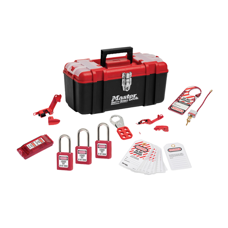 The Master Lock 1457E410KA Personal Lockout Kit is a comprehensive safety solution designed for electrical lockout procedures. This professional-grade kit includes essential devices to help isolate energy sources and ensure worker safety during maintenance or service operations. Packaged in a durable, upgraded toolbox, the kit offers organized storage for quick access and portability. Perfect for electricians, maintenance personnel, and safety managers, the Master Lock 1457E410KA kit offers peace of mind and streamlined lockout/tagout operations.