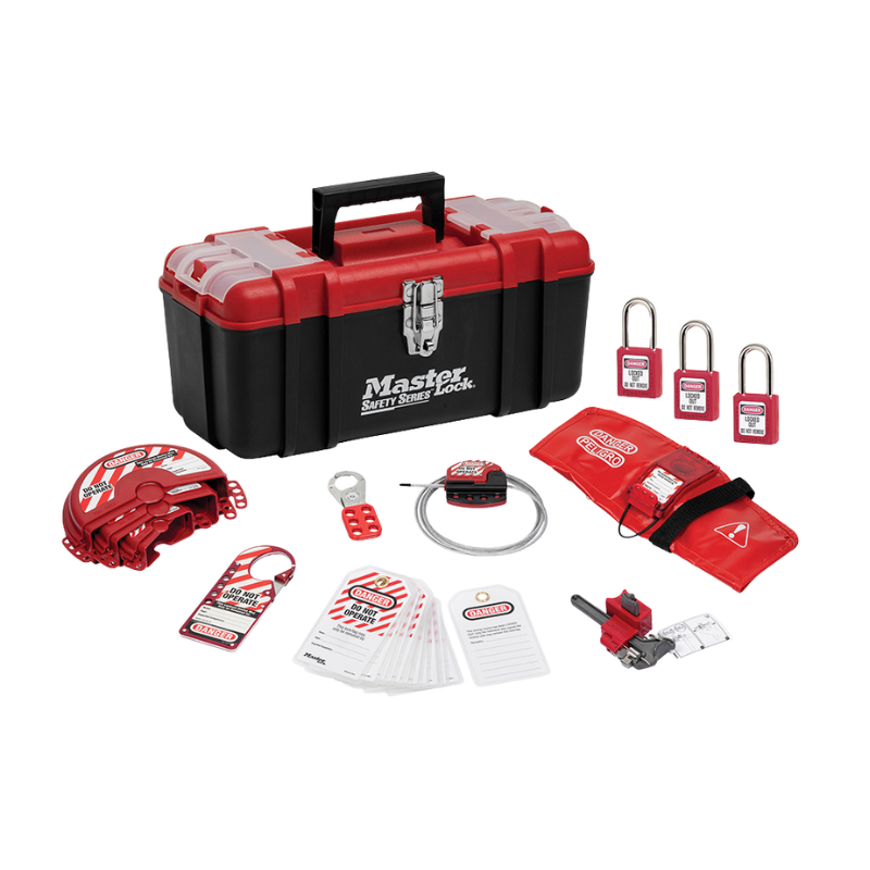The Master Lock 1457V410KA Valve Lockout Kit is a portable, valve-focused safety solution designed for isolating energy sources during maintenance. It includes three keyed alike Zenex™ thermoplastic padlocks, along with high-use valve lockout devices such as cable lockout, gate valve covers, and Grip Tight™ ball valve lockouts. All components are stored in a durable toolbox, making it ideal for individual workers who need a reliable, organized, lockout kit for valve control applications.