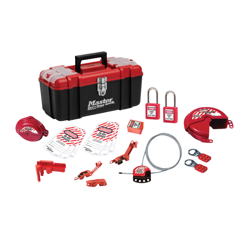 The Master Lock 1457VE410KABAS Basic Valve & Electrical Lockout Kit is a streamlined solution for performing essential lockout/tagout tasks across both valve and electrical applications. It includes plastic padlocks, hasps, tags, and a practical mix of lockout devices, all stored in a rugged, portable toolbox. With keyed alike padlocks for individual convenience, this kit is ideal for workers who need reliable, on-the-go access to basic lockout tools.
