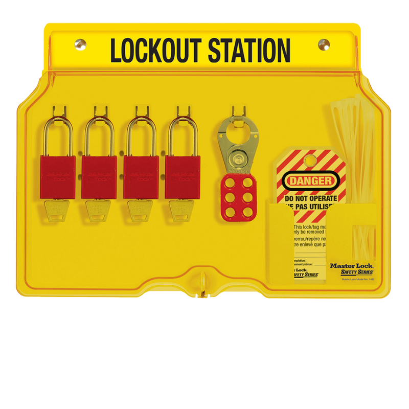 The Master Lock 1482BP1106FRC Wall Mounted Lockout Station is a durable, bilingual (French/English) 4-lock station designed to securely store essential lockout/tagout equipment. Made from resilient polycarbonate for superior heat resistance and impact strength. The translucent, lockable cover keeps contents protected and visible, while reinforced snap-on clips make storing and removing items easy. Its one-piece molded design eliminates loose parts, and the compact 12-1/4″ x 16″ size makes it ideal for high-traffic work areas.