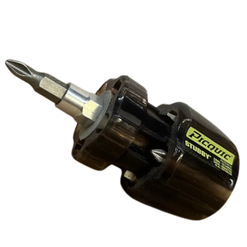The 91002-B Stubby Screwdriver is a compact, heavy-duty multi-bit tool designed for precision and convenience in tight spaces. Featuring a corrosion-resistant aircraft alloy shank and a solid, ergonomic handle for maximum torque, it includes six interchangeable bits—Robertson #1–3, Phillips #1–2, and slotted 1/4″—securely stored inside the handle. Ideal for maintenance kits, toolboxes, and on-the-go repairs, this stubby driver delivers reliable performance where standard screwdrivers can’t reach.