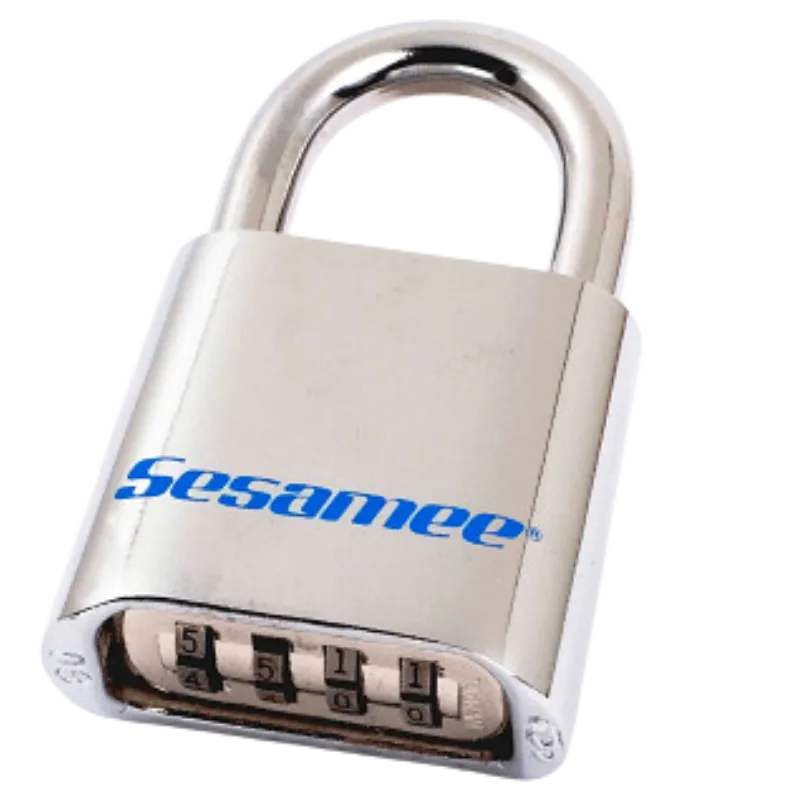 The Sesamee SE-K436 Brass Padlock offers a robust and versatile security solution with its 4-dial resettable combination mechanism. This lock is designed for durability, featuring a solid brass body and steel shackle, making it suitable for indoor and outdoor applications.