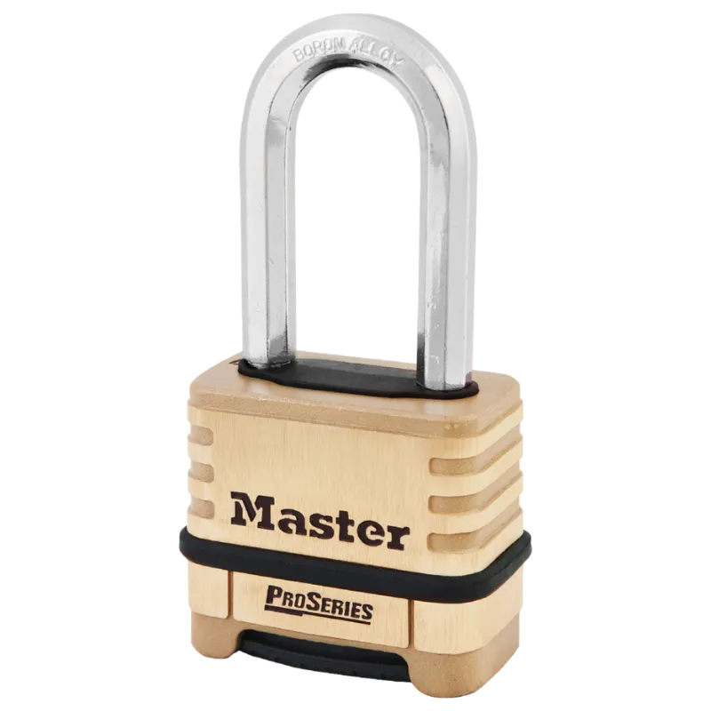 The Master Lock No. 1175LH ProSeries® Resettable Combination Padlock is engineered for demanding commercial and industrial applications. Designed with a 2-1/4″ solid brass body, it offers superior corrosion resistance, while the octagonal boron-carbide shackle provides exceptional cut resistance. Featuring a 4-digit resettable combination with 10,000 possible combinations, this lock provides flexibility and security without the need for a reset tool. The lock’s deadlocking mechanism protects against prying, shimming, and rap attacks, ensuring top-tier security even in severe environments.