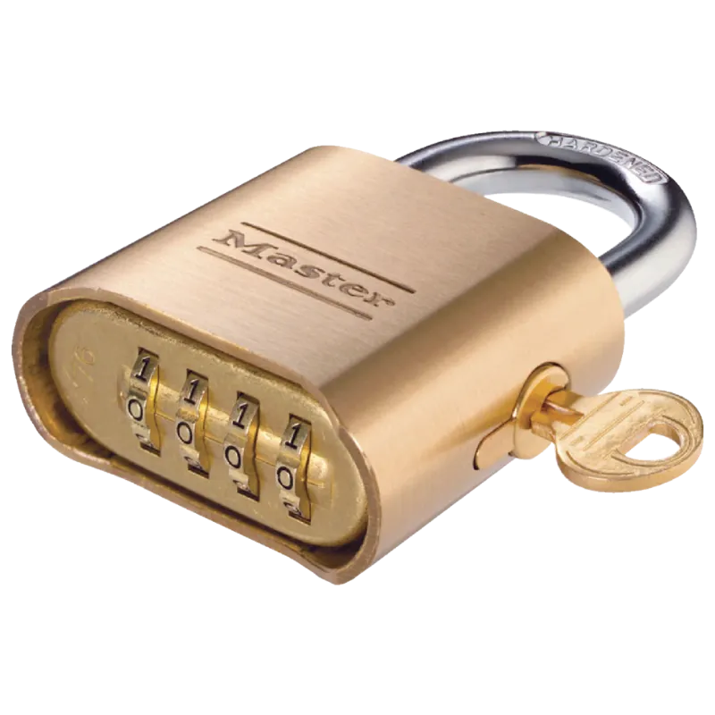 176-P744 Resettable 4-Digit Brass Combination Lock W/Supervisory Key 2″W Body, 1″ Shackle