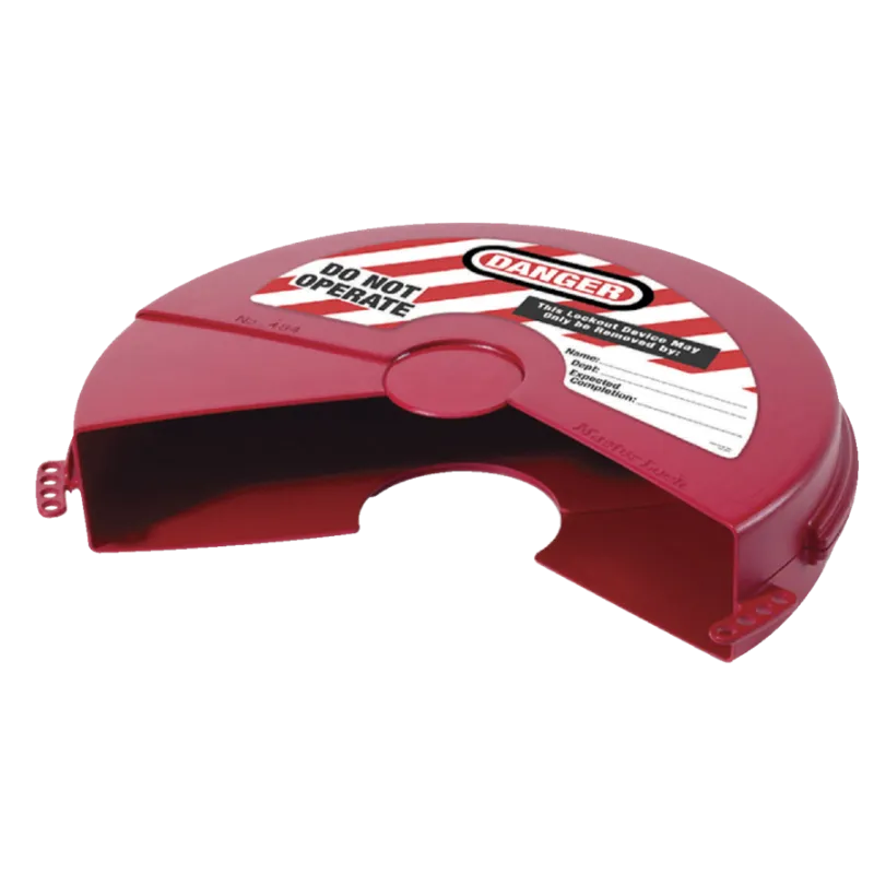 The Master Lock No. 484 Rotating Gate Valve Lockout Device is a robust and versatile safety solution designed to prevent accidental valve operation. With its patented rotating design, it is ideal for use in confined spaces and offers superior protection for valve handles ranging from 8in (203mm) to 13in (330mm) in diameter. This device is made from durable, dielectric Zenez™ Thermoplastic material, making it suitable for harsh environments and chemical exposure.