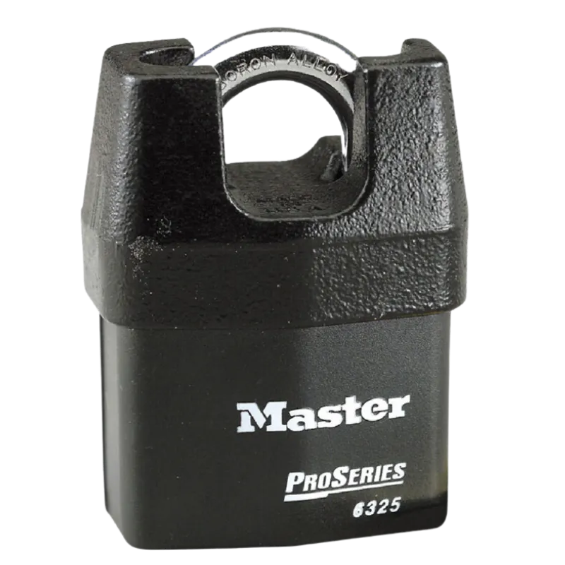 The Master Lock No. 6325 Shrouded Padlock delivers high-performance security designed for industrial and transportation environments. With a rugged solid steel body, this padlock resists physical attacks, while the iron shroud protects the shackle from bolt cutters. The dual ball locking mechanism and hardened boron alloy shackle ensure superior resistance against prying and cutting, making it a reliable choice for securing valuable assets.