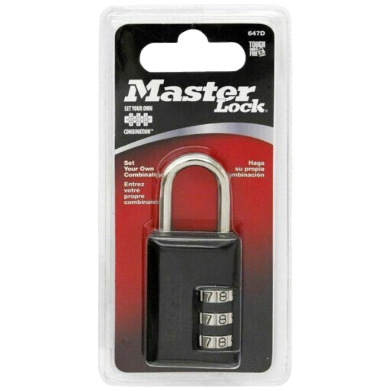 The Master Lock No. 647D Set Your Own Combination Padlock combines compact design with reliable security, making it a versatile choice for personal and light-duty applications. Featuring a durable 1-3/16″ (30mm) metal body with a sleek black finish, this padlock is built to withstand daily wear and tear.