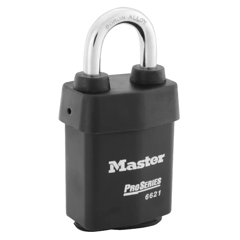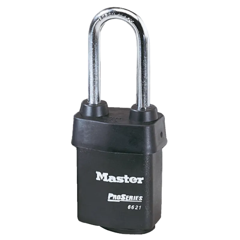 The Master Lock No. 6621 ProSeries® Weather Tough® Padlock is built to endure harsh outdoor conditions while delivering robust protection for industrial and commercial needs. The exclusive Weather Tough® cover safeguards the lock from water, ice, dirt, and grime, ensuring reliable performance in extreme environments. With the option to choose from 22 Key-in-Knob keyways, you can match this padlock to your security door locks for seamless integration.