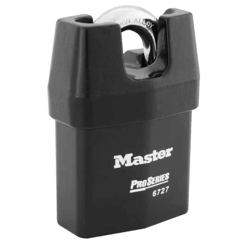 The Master Lock No. 6727 ProSeries® Weather Tough® Shrouded Padlock is engineered for demanding industrial and outdoor environments. Its heavy-duty steel body resists physical attacks, while the hardened boron alloy shackle provides exceptional cut resistance. The iron shroud further enhances security by protecting the shackle from bolt cutters, making it a reliable solution for high-risk areas.