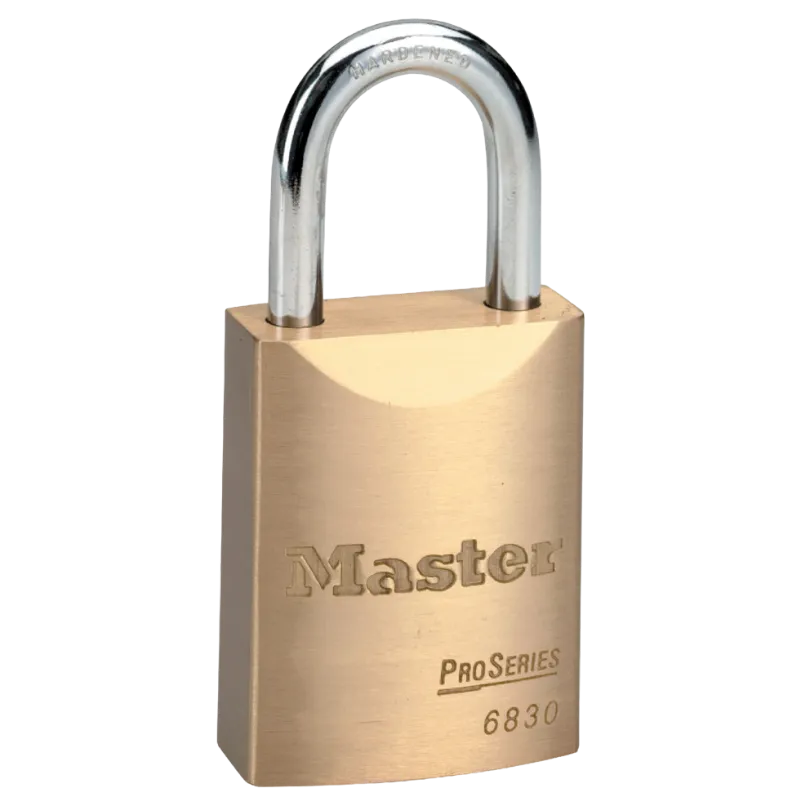 The Master Lock No. 6830 ProSeries® Solid Body Padlock delivers exceptional performance and durability, making it ideal for demanding commercial and industrial applications. Crafted with a wide solid brass body, this padlock resists corrosion and performs reliably in caustic and corrosive environments.