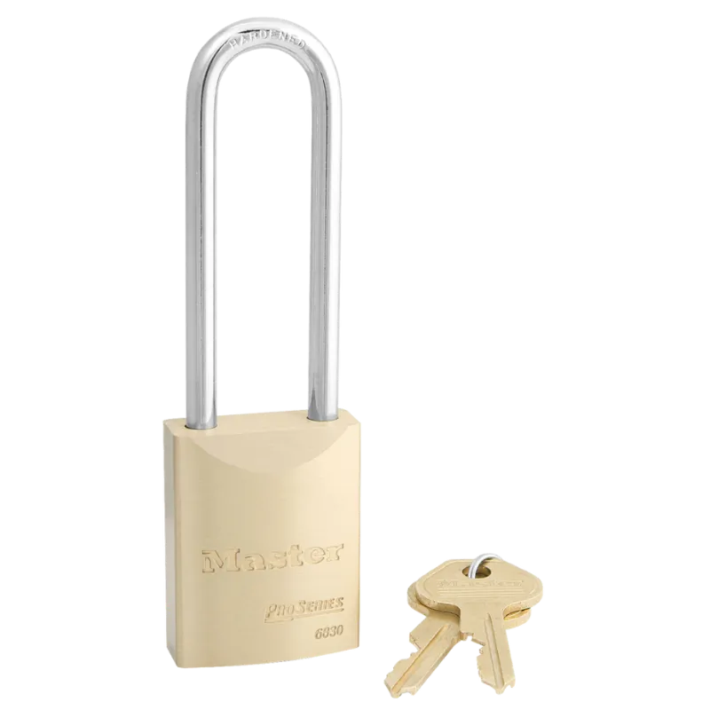 The Master Lock No. 6830LT ProSeries® Solid Body Padlock delivers exceptional performance and durability, making it ideal for demanding commercial and industrial applications. Crafted with a wide solid brass body, this padlock resists corrosion and performs reliably in caustic and corrosive environments.