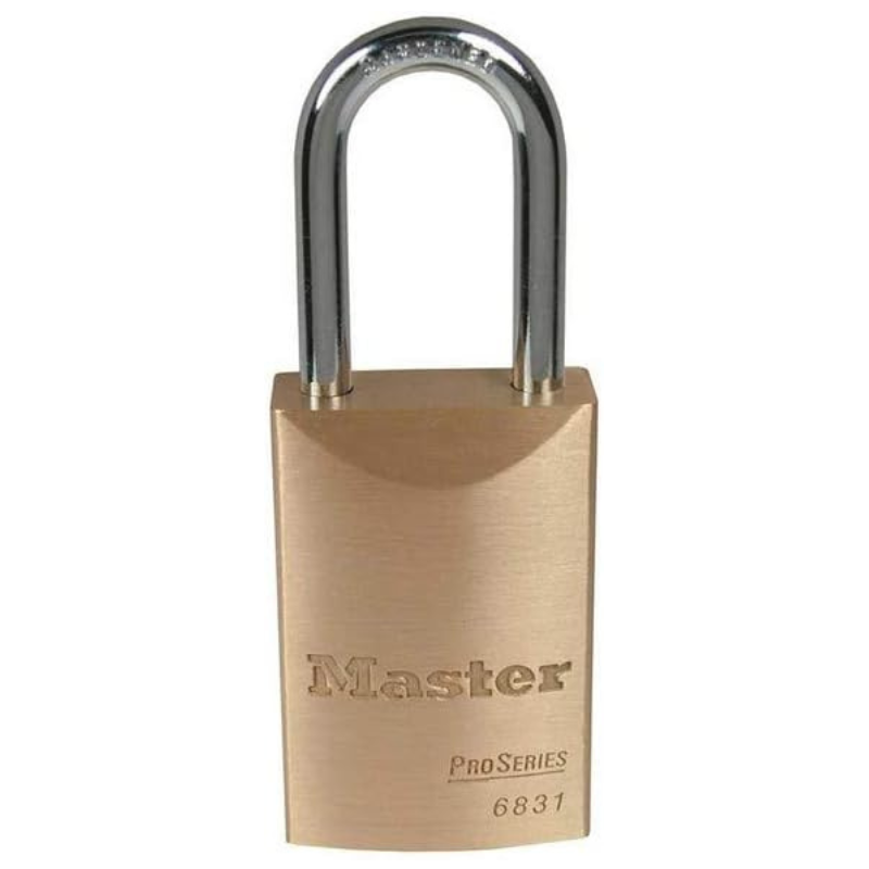 The Master Lock No. 6831 Solid Body Padlock delivers exceptional performance and durability, making it ideal for demanding commercial and industrial applications. Crafted with a wide solid brass body, this padlock resists corrosion and performs reliably in caustic and corrosive environments. Its hardened boron alloy shackle offers outstanding cut resistance.