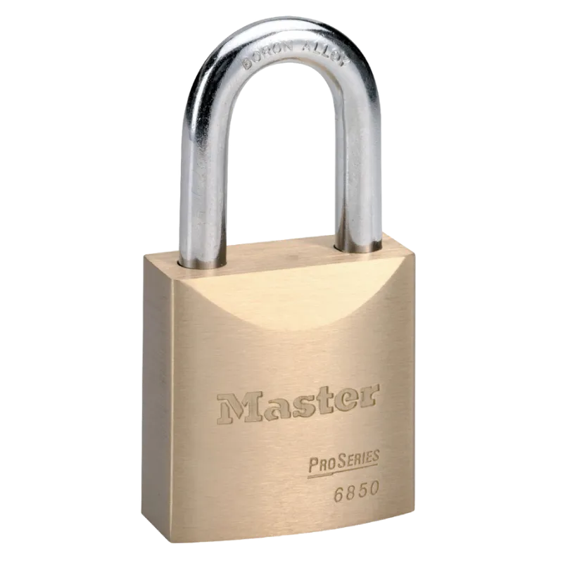 The Master Lock No. 6850 ProSeries® Solid Body Padlock offers industrial-grade security with its robust 2″ (51mm) wide solid brass body, engineered to resist corrosion in caustic, salty, and corrosive environments. This padlock is a durable and reliable solution for commercial and industrial security needs.
