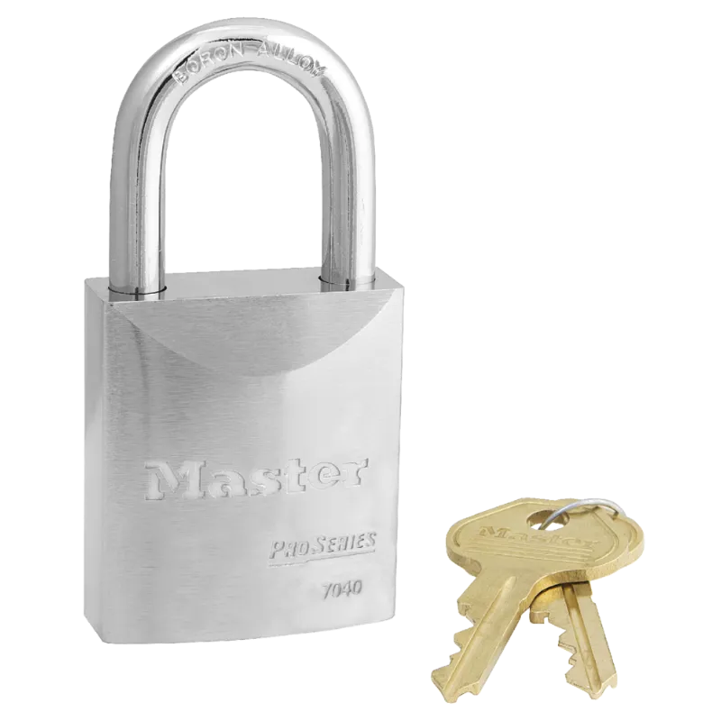 The Master Lock No. 7040 ProSeries® Solid Body Padlock offers unmatched security, ideal for commercial and industrial environments. Its heavy hardened steel body with chrome rustproofing ensures long-lasting durability and superior protection against environmental elements.