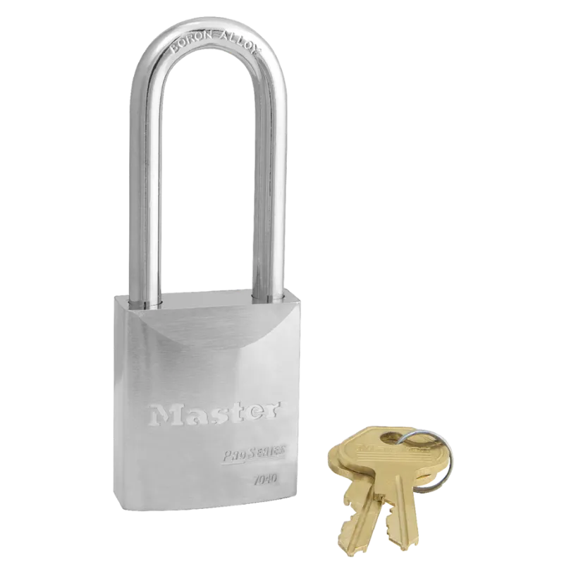 The Master Lock No. 7040LJ ProSeries® Solid Body Padlock offers unmatched security, ideal for commercial and industrial environments. Its heavy hardened steel body with chrome rustproofing ensures long-lasting durability and superior protection against environmental elements.