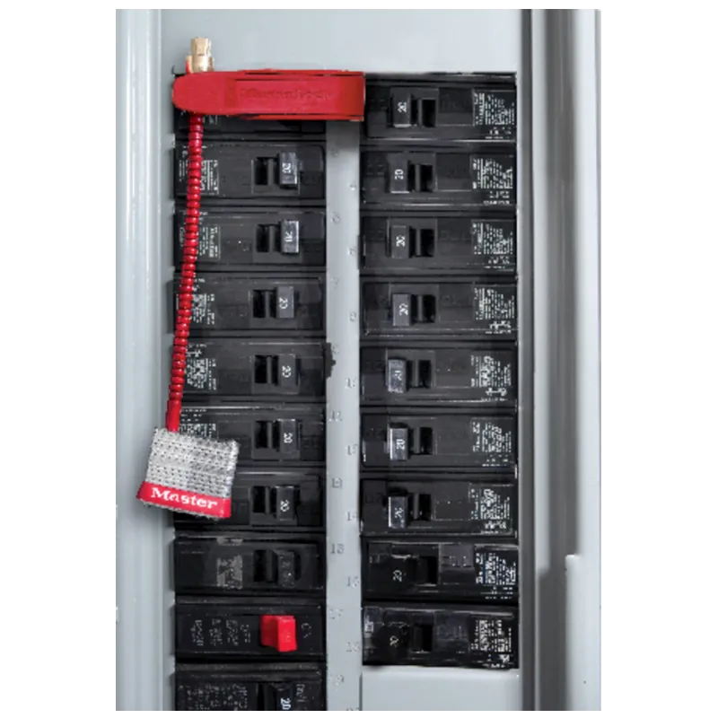 The Master Lock No. 7C5RED Circuit Breaker Compact Padlock is specially designed to secure all types of circuit breaker lockout devices. With its flexible cable shackle and compact design, it ensures proper lockout while allowing most panel doors to close securely.